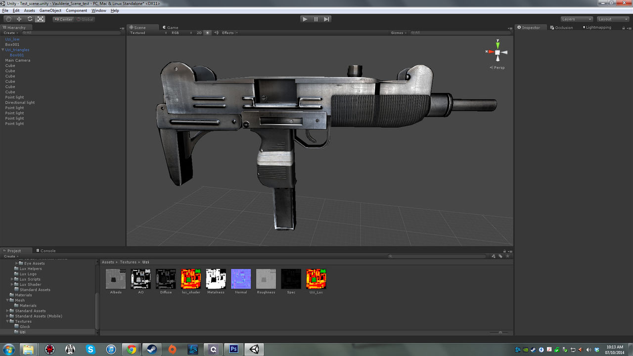 Okay so I think I'm starting to finally get the hang of Lux in Unity. So here's a picture of the Uzi ingame. Feel free to C&C
