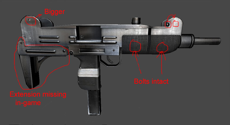 Okay so I made a few modification to the Uzi. I'm quite satisfied with the result. I'd like your opinion on it before I start texturing it. I still need to correct a few things but the overrall shape seems fine